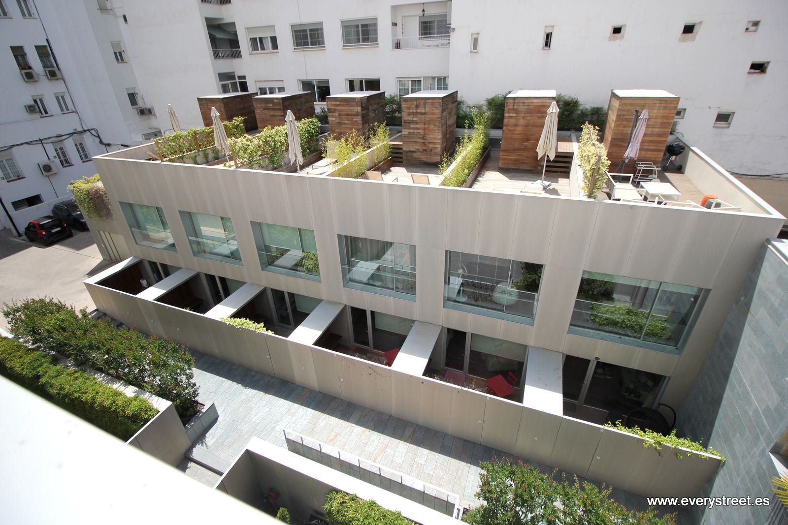 La vivienda, con una superficie total de 172 m², se distribuye en dos plantas que combinan funcionalidad, diseño y mucha luz natural. En la planta principal, de 90 m², se encuentra un amplio espacio de salón, comedor y cocina integrada totalmente equipada. En esta misma planta, el loft cuenta con una habitación con armarios empotrados y un baño completo. Una escalera conduce a la planta superior, de 80 m², donde se ubica una impresionante terraza ajardinada, amueblada y con suelo de madera de ipe, ideal para disfrutar al aire libre con total privacidad y tranquilidad.